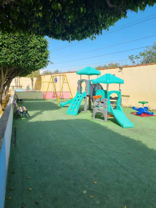 Condomínio com área de lazer completa, com piscina, área infantil, churrasqueira e salão de festas.